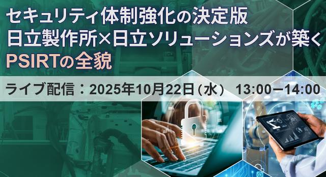 本セミナーでは、日立製作所と日立ソリューションズの専門家が、PSIRT構築における課題や対応策について対談し、コンサルティングから運用支援まで、全体最適を見据えた包括的なソリューション群を紹介します。