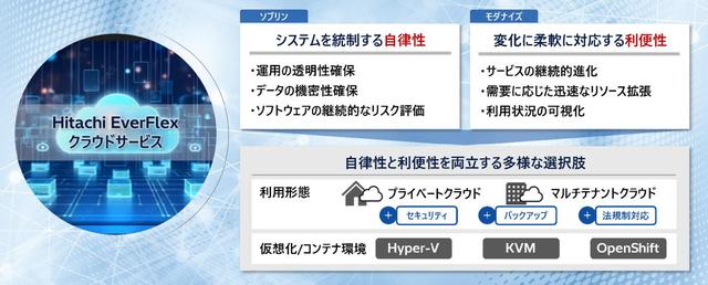 日立は、企業システムにおけるソブリン性の確保とモダナイズを促進する新しいクラウドサービスを、Hitachi EverFlex クラウドサービス(以下、本サービス)として12月19日より順次提供開始した。